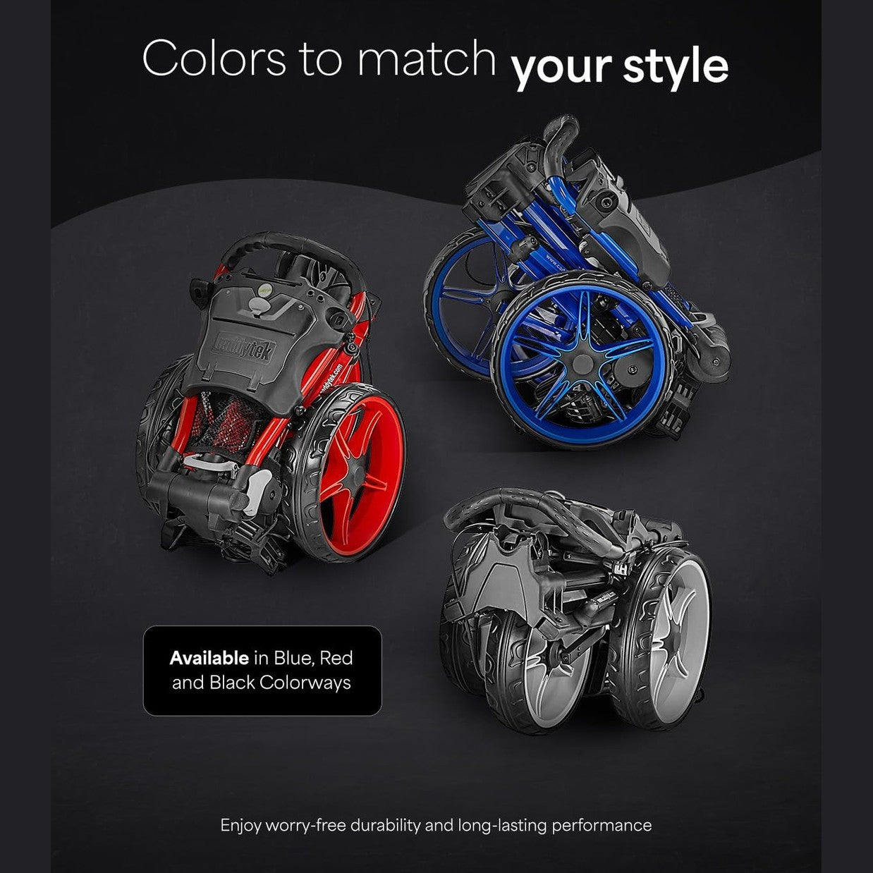 Designed with large 11.5" rear wheels and a 10.5" front wheel, it rolls smoothly across fairways, roughs, and slopes while maintaining excellent balance and control. The adjustable TPR handle provides ergonomic comfort for golfers of all heights, while the reliable brake system ensures safe parking on hills.