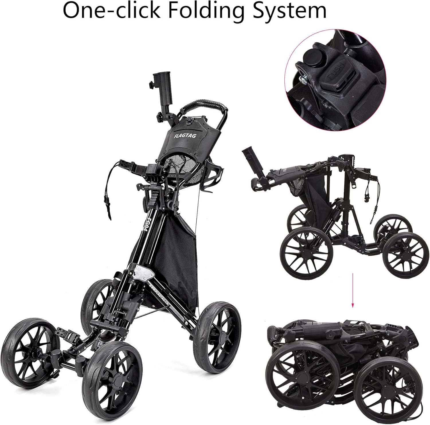 The Flagtag 4-Wheel Golf Push Cart is designed for effortless setup, portability, and durability, making it the perfect choice for golfers who enjoy walking the course.