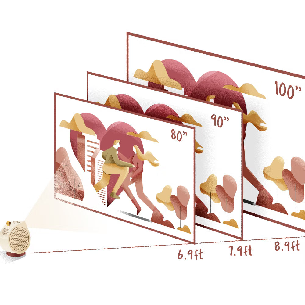 Wide-angle projection with autofocus and vertical keystone for hassle-free setup.