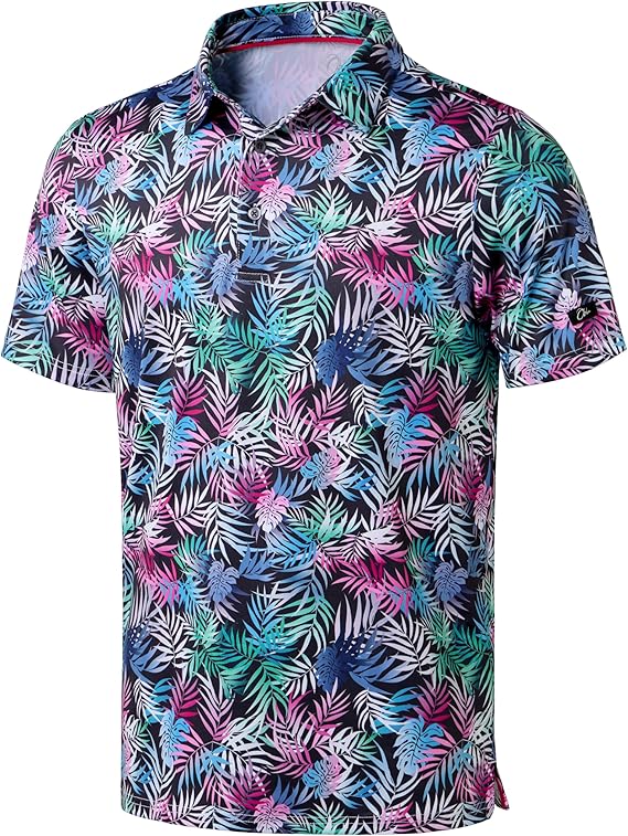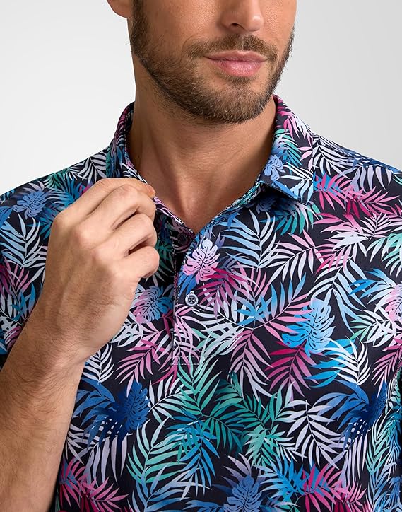 Men's Golf Polo - Short Sleeve, Performance Moisture Wicking - Colorful Palms