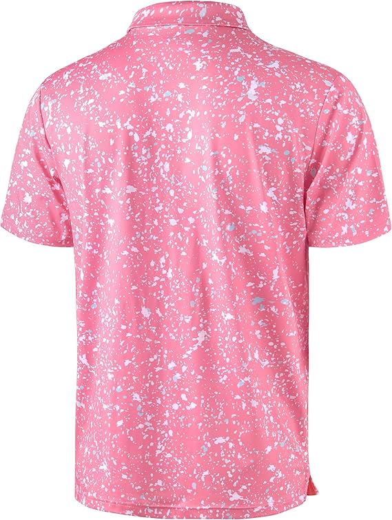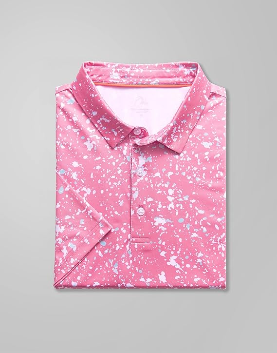 Men's Golf Polo - Short Sleeve, Performance Moisture Wicking - White on Pink