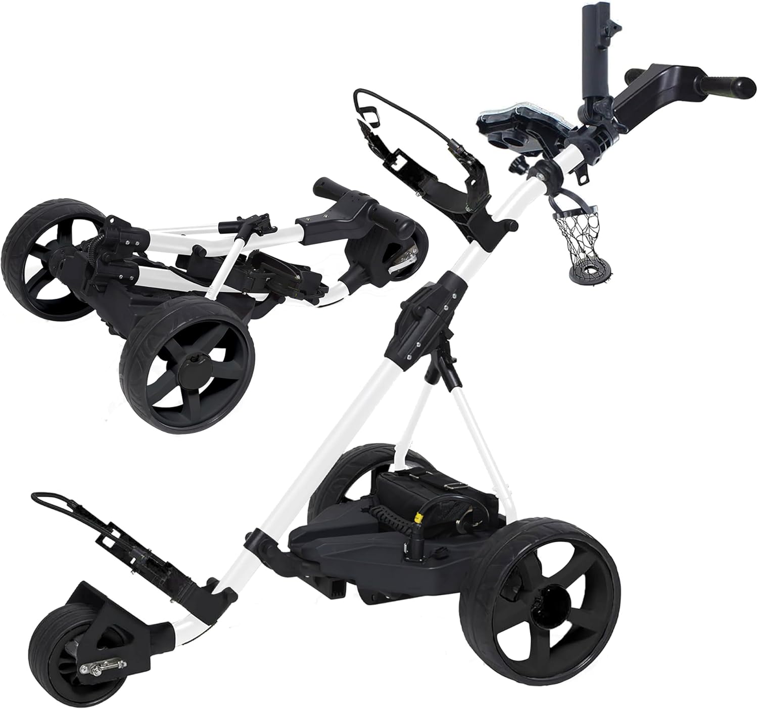 Powered by a dependable 12V rechargeable battery, it provides reliable performance for a full 18-hole round, giving you confidence and peace of mind. Practical features, including a foldable design and convenient accessories, make setup and storage hassle-free.