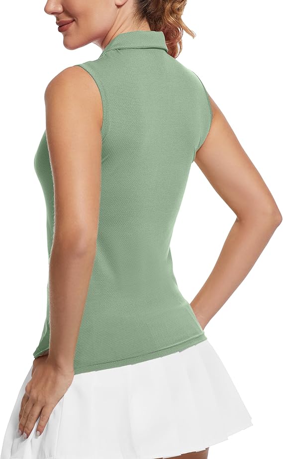 Stay cool, stylish, and protected in this women’s sleeveless V-neck golf polo, crafted from a soft, stretchy blend of 92% polyester and 8% spandex. Designed with a slim fit and elegant silhouette, the sleeveless cut and breathable fabric allow for maximum mobility and comfort during warm-weather activities.